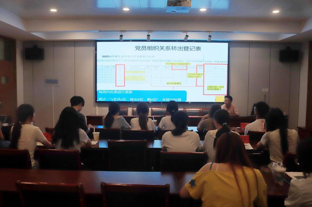 随后,徐赟就毕业生党员组织关系转接和新生党员档案的接收填写内容、注意事项与时限等方面作党务经验分享,各支部应在规定时间内积极高效地完成转接工作,以此加强党员思想教育,提高党员的思想素质。