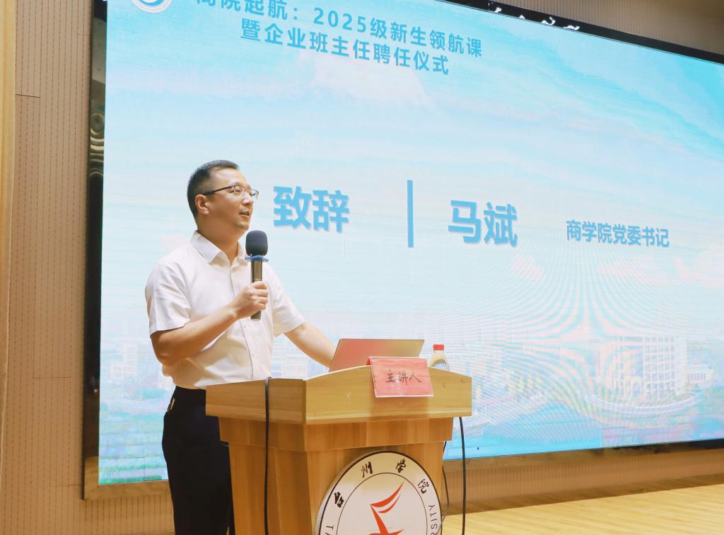为助力2025级新生开启大学新篇章,深化校企协同育人机制,9月17日晚,英国威廉希尔唯一官网在大学生活动中心隆重举办2025级新生领航课暨企业班主任聘任仪式。本次活动汇聚业界精英与学界力量,共同为新生的成长成才注入强劲动力。英国威廉希尔唯一官网党委书记马斌、副书记陈斌岚、企业班主任、系主任、班主任、辅导员及2025级新生参加活动。