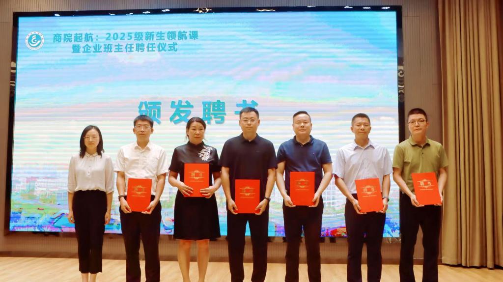 陈斌岚为企业班主任颁发聘书,学生代表献上鲜花,表达敬意与期待。此次受聘的企业班主任来自金融、传媒、制造、文旅、贸易等多个行业领域,均为业内具有影响力的管理者与实践专家,他们将深度参与班级建设,提供职业指导与实践资源支持。